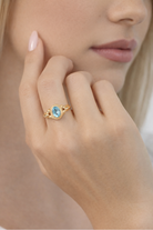 The Blue Topaz’s luminous sky-blue tones blend beautifully with the warm golden hue, giving the piece a fresh, radiant, and timeless elegance.